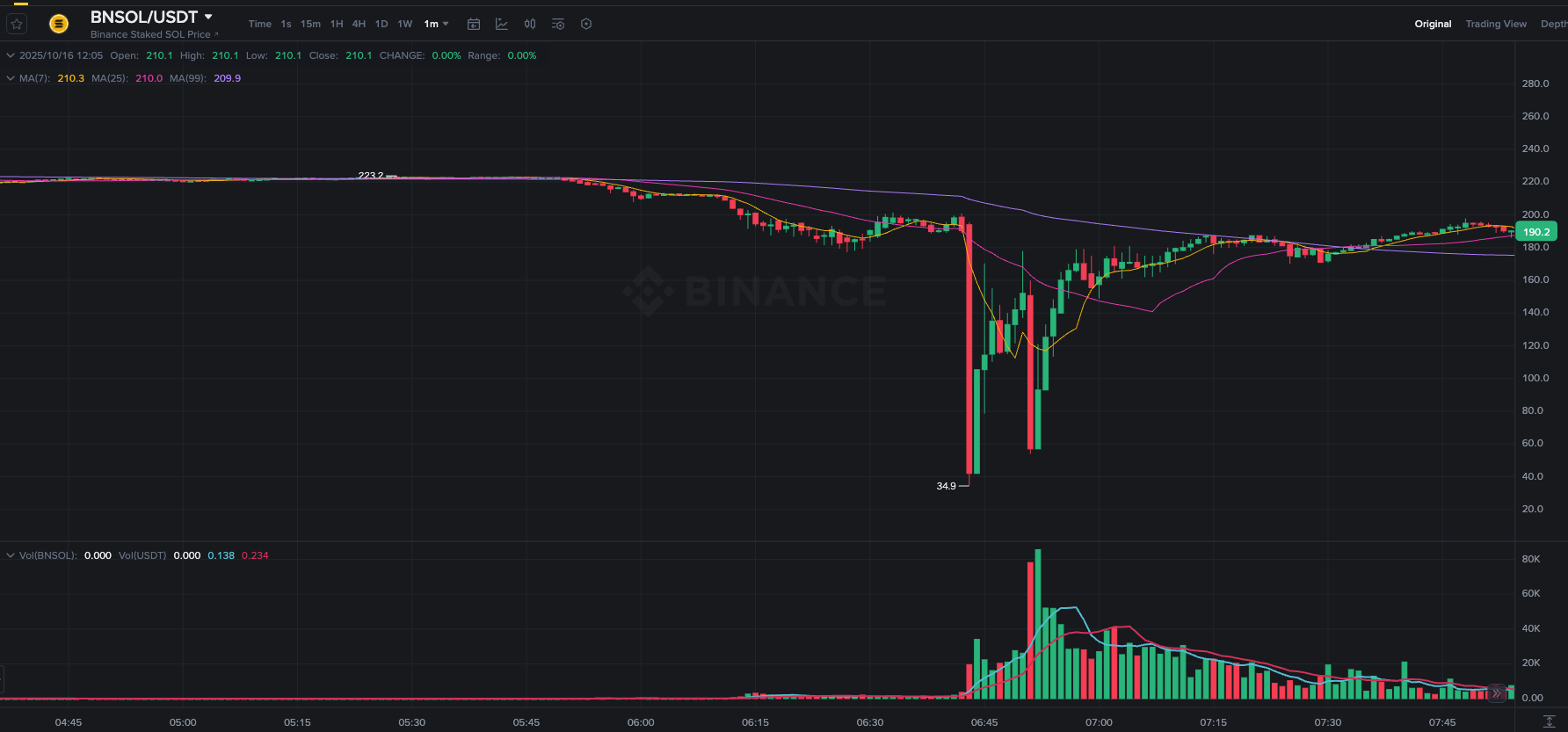 Binanceのオラクルはこれを“正しい市場価格”と誤認。 担保評価が急落 → 担保不足 → 連鎖的清算が発生。